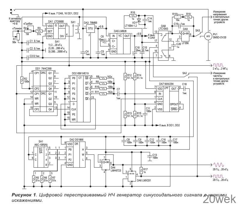 Цифровой перестраиваемый НЧ генератор синусоидального сигнала с низкими искажениями