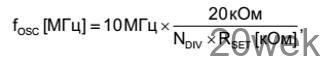 где ND|V принимает значения 100 (SA1 в положении 1), 10 (SA1 в положении 2) и 1 (SA1 в положении 3), а RSET = R1 + R3 + R4. Регулировка частоты генератора выполняется потенциометрами R4 («Грубо») и R1 («Точно»).