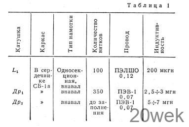 Данные катушки L1 и дросселей указаны в табл. 1.