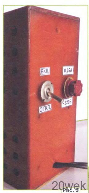 На рис. 3 показана задняя панель устройства, на которой установлены держатель плавкой вставки и выключатель SA2 (МТДЗ). В нижней части сделано отверстие для сетевого провода.