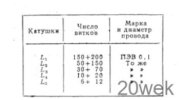 Обмотки содержат: I—2500 витков провода ПЭЛ 0,15; II—170 витков провода ПЭЛ 0,2; III—320 витков ПЭЛ 0,15. г. Ленинград