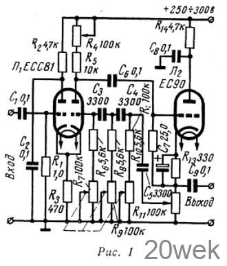 ОТ РЕДАКЦИИ: Лампу ЕСС81 можно заменить 6Н1П или 6Н8С и ЕС90 — одним триодом 6Н1П или 6С2С.