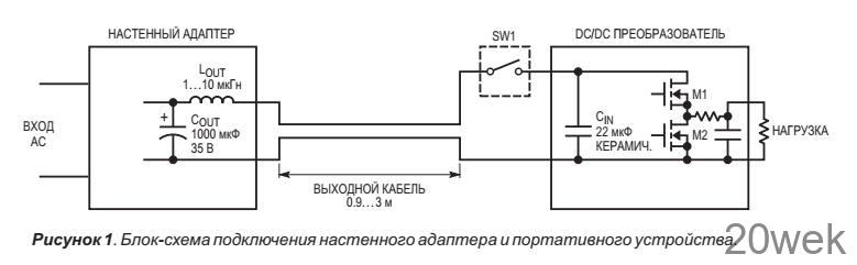 Проблема бросков входного напряжения связана с последовательностью включения питания. Если настенный адаптер сначала включен в розетку сети переменного тока, подключение его выхода к портативному устройству может вызвать броски входного напряжения, способные повредить DC/DC- преобразователи внутри устройства.