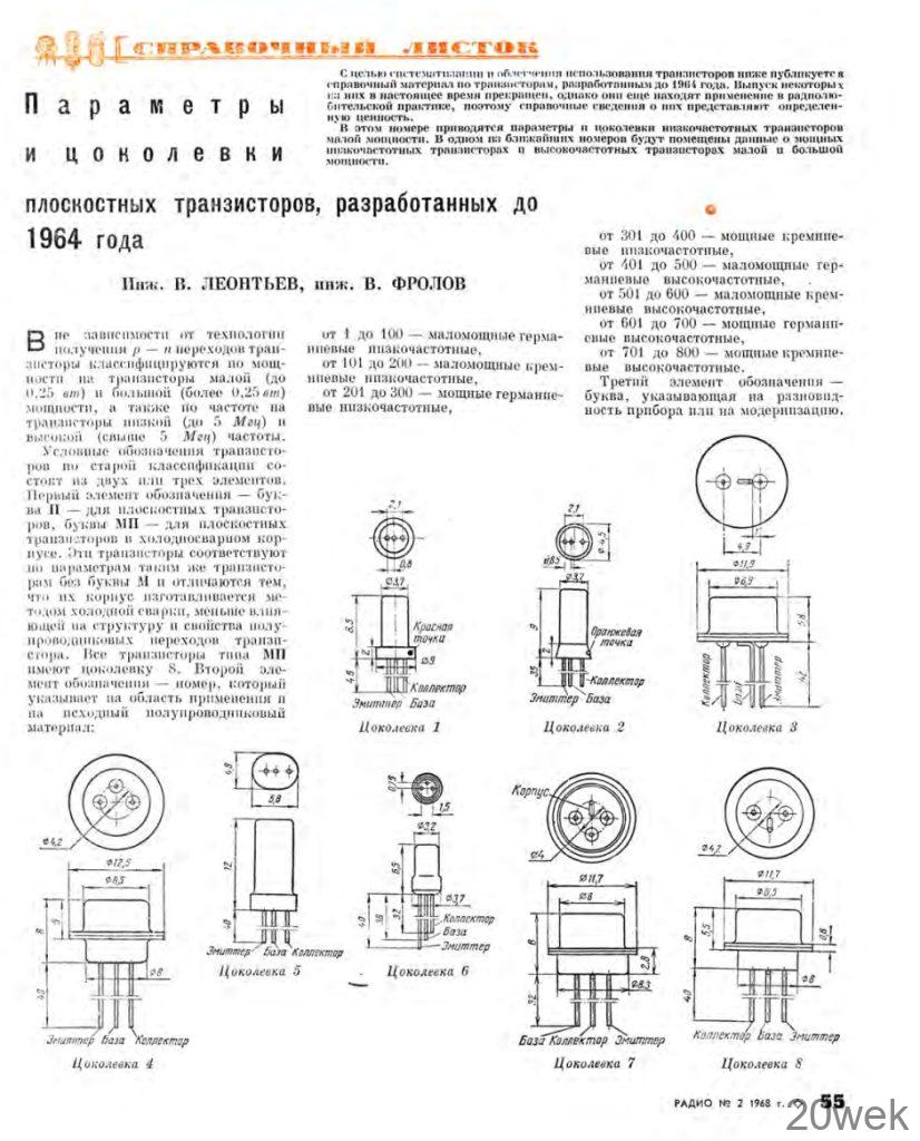 Параметры и цоколевки плоскостных транзисторов, разработанных до 1964 года
