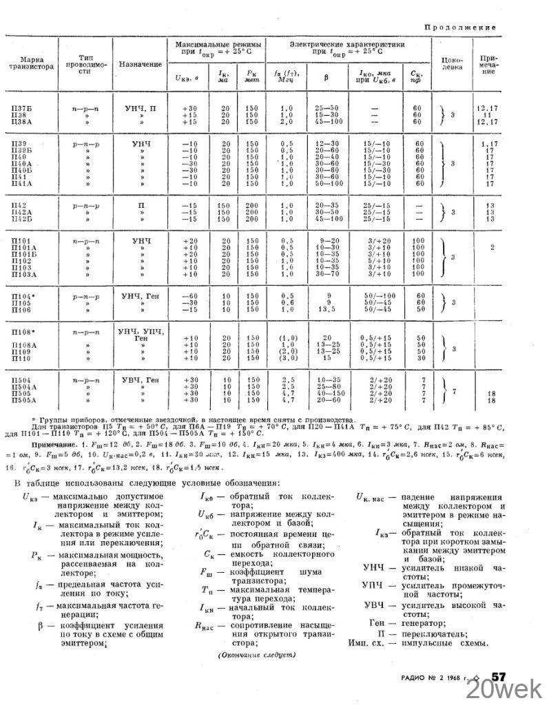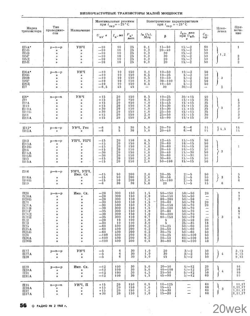 Параметры и цоколевки плоскостных транзисторов, разработанных до 1964 года