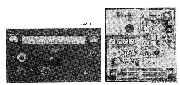 Шасси возбудителя имеет размеры 440X440X140 мм, а передняя панель— 485X280 мм. Вид передней панели и шасси возбудителя показан на рис. 1.