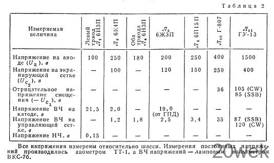 Налаживание. Как обычно, сначала проверяют монтаж и режимы работы ламп передатчика, основные из которых даны в табл. 2.