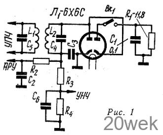 Подавитель импульсных помех выполнен на правом диоде лампы 6Х6С (рис. 1). Левый диод лампы используется для детектирования и получения напряжения АРУ.