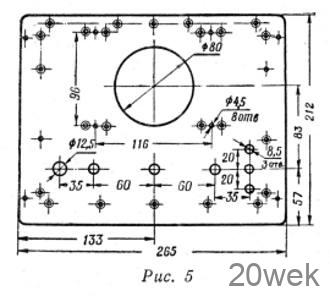 Конструкция прибора. Прибор помещен в металлический футляр размерами 212X265X 105 мм, разметка лицевой панели дана на рис. 5.