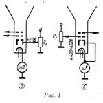Проверка кинескопов производится следующим образом. Авометр, установленный для измерения постоянного тока в диапазоне 0— 0,2 ма, присоединяют к приставке. Затем подключают выходной кабель приставки к кинескопу и сетевой — к сети переменного тока напряжением 220 в. Переключатели П1 и П2 должны находиться в верхнем (по схеме) положении (рис. 1). После прогрева катода прочитывают показания величины катодного тока кинескопа по шкале авометра и определяют пригодность кинескопа по эмиссии. Работоспособные кинескопы имеют катодный ток не ниже 50—70 мка. Затем нажимают кнопку и, удерживая ее в течении 5 сек, наблюдают по авометру спад катодного тока, а после отпускания кнопки— нарастание этого тока. Если спад тока идет медленно, а нарастание быстро — это свидетельствует о пригодности кинескопа к работе. Обратное явление служит признаком выхода кинескопа из строя.
