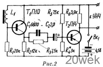 Предварительный усилитель для приставки выполнен на двух транзисторах (рис. 2).