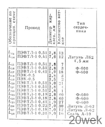 Намоточные данные катушек индуктивности и дросселей, выполненных обычным способом, даны в таблице.