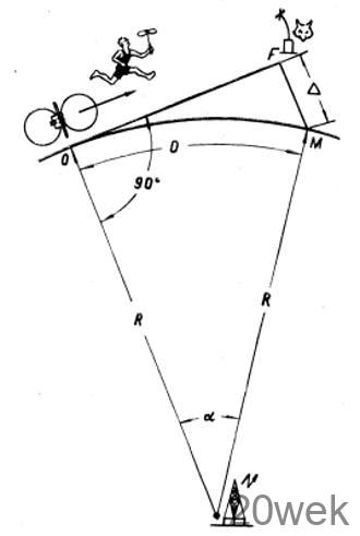 Посмотрим, как влияет расстояние R (рис. 3) до выбранной станции — маяка на точность выхода на «лису». В худшем случае направления на «лису» и на маяк находятся под углом 90°, при этом ошибка имеет наибольшее значение, так как охотник пойдет по дуге ОМ окружности радиусом R вместо того, чтобы двигаться по касательной OF. Расстояние D, пройденное за паузу (4 мин.), редко бывает более одного километра. При этом отклонение А будет не более: 50 м для R=10 км; 20 м для R 30 км; 3,5 м для R—150 км; 1м для R— 500 км. Учитывая, что точность выхода в район «лисы» должна быть в пределах 200—300 м, а также возможные отклонения в пути для обхода препятствий, можно считать допустимым минимальное расстояние до маяка 10—15 км, то есть в сущности использовать местную радиовещательную станцию. Особенно удобно пользоваться радиокомпасом для продолжения «ближнего» поиска «лисы», когда во время сеанса охотник не успевает добежать до передатчика 100—200 м. При этом, двигаясь точно по сигналу радиокомпаса, сориентированного во время сеанса, можно обнаружить «лису» почти с таким же успехом, как если бы она продолжала работать.