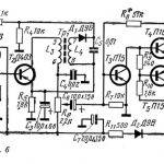 Гетеродин собран на отдельном транзисторе Т1 типа П423, включенном по схеме с общей базой (с трансформаторной обратной связью). Схема с отдельным гетеродином позволила упростить настройку приемника за счет значительного ослабления связи между гетеродинными и входными цепями (особенно в диапазонах коротких волн). Неполное включение контура гетеродина в коллекторную цепь транзистора в диапазоне СВ вызвано необходимостью уменьшить емкость Ск-б вносимую в контур гетеродина.