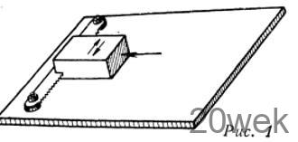 6-У-12 мм сверлят два отверстия диаметром 3—3,5 мм на расстоянии друг от друга несколько большем, чем расстояние между отверстиями ножовочного полотна. На винты, пропускаемые в эти отверстия снизу, одеваются шайбы по толщине равные примерно толщине пластины,которую необходимо иметь. На шайбы устанавливают ножовочное полотно и затягивают его гайками. Затем, прижимая кусок пенопласта к фанере, пилят его, совершая продольные движения вдоль ножовочного полотна (см. рис. 1). Для увеличения чистоты поверхности полученной пластины, ее можно обработать крупнозернистой наждачной бумагой, прижимая последнюю сверху губкой.