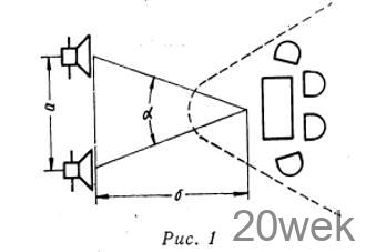 У радиолюбителей, впервые налаживающих стереоустановку, всегда возникает вопрос, как расположить акустические агрегаты каналов, чтобы получить наилучший стереоэффект. Ранее считали, что оба агрегата и слушатель должны находиться как бы в вершинах равностороннего треугольника (все углы по 60°). Но, как показала практика, в ряде случаев при таком размещении наблюдается «провал» звука между громкоговорителями, и стереоэффект возникает скачкообразно.