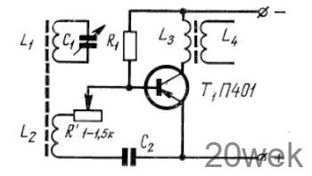 Транзисторные приемники прямого усиления обладают, как известно, неравномерностью усиления по диапазону. Этот недостаток можно устранить, включив между базой транзистора Т1 (рис. 1) и катушкой L2 небольшое (1 —1,5 ком) переменное сопротивление R’, которое позволяет не только изменять величину входного сигнала, но и регулировать входное сопротивление транзистора. Изменяя величину этого сопротивления, можно регулировать чувствительность приемника по всему диапазону