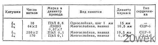 Катушка контура промежуточной частоты намотана на каркасе диаметром 6,2 мм, высотой 7 мм. После намотки катушку вставляют в броневой сердечник СБ-1 а, обе половины которого склеивают клеем БФ-2.