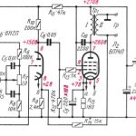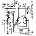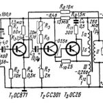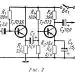 При воспроизведении монофонических записей включают переключатель П1. Контакты 1 замыкаются и шунтируют регулятор тембра высших частот R13, и таким образом частотная характеристика левого канала ограничивается со стороны высших звуковых частот, как показано на рис. 2. Регулятор тембра низших частот R13 остается действующим и регулирует усиление канала в области низших звуковых частот.