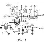 Сопротивления R1 и R2 (по несколько сотен ом) подбираются так, чтобы при отключенной антенне падение напряжения на них от анодного тока было одинаковое и составляло 5—10 в. Сопротивление R3 ограничивает ток через прибор и подбирается при настройке на мощные местные радиостанции. Такой индикатор позволяет грубо судить также о величине ВЧ-сигнала на входе радиоприемника.