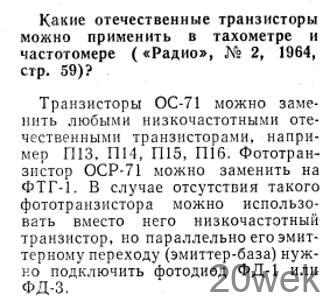 Тахометр и частотомер, схемы которых приводятся ниже, предназначены для работы на очень низких частотах. Результат измерений в оборотах в секунду для тахометра и в герцах для частотомера, считывается непосредственно со шкалы стрелочного прибора.