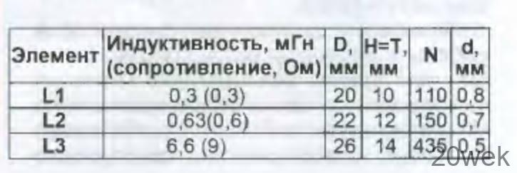 Конструкционные параметры катушек аналогичны рекомендациям, данным в (3, 4). Параметры фильтра для головки Н143 взяты из [3] при повторении конструкции. Катушки каркасов изготовлены из оргстекла толщиной 3 мм и склеены дихлорэтаном. Их параметры и конструкционные размеры приведены в таблице В ней приняты следующие обозначения: D диаметр каркаса; Н и Т — размеры сечения обмотки; N — число витков; d диаметр провода. После намотки провод зафиксирован лаком, а каркасы катушек приклеены к плате герметиком.