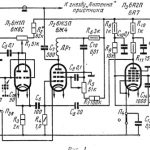 Вторичная обмотка (Л2) включена последовательно в цепь экранной сетки. Трансформатор намотан на каркасе из полистирола длиной 100 мм и диаметром 25 мм. Катушка L1 намотана виток к витку и содержит 15 витков провода марки ПЭВ-1 диаметром 2,0 мм. Затем поверх витков кладут прокладку из полиэтиленовой пленки или из другого материала с высоким пробивным напряжением. Катушку L2 наматывают поверх катушки L1 тем же проводом, виток к витку (см. рис. 2). Количество витков (от 10 до 30) подбирается при налаживании усилителя. Напряжение накала подается с симметричного трансформатора через дроссели Др1, Др2 с бифилярной намоткой.