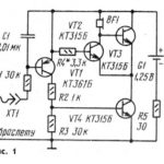 Примечание редакции. В генераторе можно применить транзисторы КТ361Б, Г (V1, V2, V3) и КТ315Б.Г (V6, V7, V8), диоды (V4, V5) могут быть типа КД503А.
