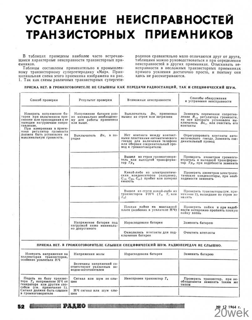 УСТРАНЕНИЕ НЕИСПРАВНОСТЕЙ ТРАНЗИСТОРНЫХ ПРИЕМНИКОВ