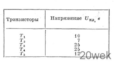 Сердечник силового трансформатора набран из пластин Ш20 (Ст. ЭЗЗО), толщина набора 50 мм. Сетевая обмотка I содержит 990 витков провода ПЭВ-2 0,43; обмотка II—110 витков провода ПЭВ 0,12; обмотка III — 156 витков провода ПЭВ 0,12; обмотка IV — 1185 витков провода ПЭВ-2 0,31.